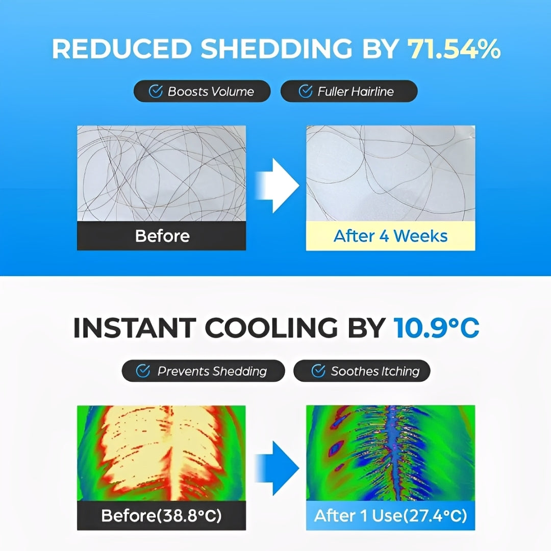 The instant cooling is real β€” you can literally feel your scalp breathe. My hair feels stronger and thicker near the roots. Love that it doesn’t mess up my color either.